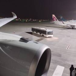 Alles bestens, im Gegensatz zu Doha ist es kühl. Bin müde aber glücklich. Flug mit Qatar Airlines, Flugzeug von Oman Air. Wieder sehe gute Bordverpflegung.