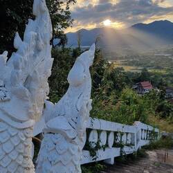 Die Umgebung, oder besser gesagt, die Natur hielt allerdings was sie verspracht. Um die Gegend zu erkunden, liehen wir uns wieder einen Roller und fuhren durch die kurvenreichen Straßen in Richtung Nord-westliche Landesgrenze zu Myanmar. Dort besichtigten wir eine Tropfsteinhöhle und erkundeten das Gelände drumherum. Auf dem Heimweg legten wir noch einen Stopp bei einem Aussichtspunkt und einem schönen Wasserfall ein.