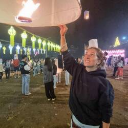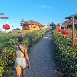 In den nächsten Tagen besuchten wir ein chinesisches Dorf, die beeindruckend große Buddha Statue in Pai, ein wunderschönes Areal, durch das man auf simpel erbauten Bambusbrücken läuft, das Lichterfest, bei dem viele bunte Lampignons in Richtung Himmel geschickt werden und natürlich den ein oder anderen Shop und das ein oder andere Restaurant in Pai. Für den alltäglichen Start in den Tag fanden wir schnell 'unser' Frühstückshaus. Hier gab es köstlichen Kaffee und super leckere Avocado-Toasts. Dazu blauer Himmel, Sonnenschein und Wolken, die aussahen wie aus Zuckerwatte und entspannte Pianomusik. Ich wüsste nicht, wie man bitte entspannter in den Tag starten sollte. Die anfängliche Enttäuschung war genauso schnell wie sie aufkam demnach auch wieder verlogen.