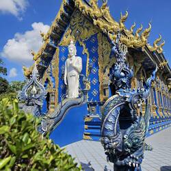 Am nächsten Tag ging es für Rico und mich dann zum Rollerverleih und von dort zunächst zum berühmten weißen Tempel. Dieser wirkte wie eine Mischung aus religiöser Anlage und Kunstausstellung. Außer den wirklich viiielen Touristen, hat uns die Tempelanlage sehr gut gefallen.
