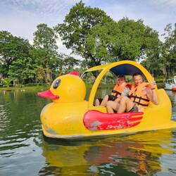 Auch Montag regnete es wieder. So starteten wir ganz entspannt wieder mit einem malayischen Ko-Fi in den Tag. Trotz Regen wollten wir noch ein bisschen was von der Stadt sehen. So peilten wir erstmal einen ganz bestimmten Streetfood Stand an - Restoran Makan La @ Brickfields. Hier soll es die besten gebackenen Bananen der ganzen Stadt geben. Außer den Bananen haben wir auch frittierte Erdnussbällchen probiert. Einen Vergleich haben wir bisher zwar nicht, uns hat aber beides sehr gut geschmeckt. Im Anschluss ging's zu Fuß weiter zu einem chinesischen Tempel. Dieser war sehr bunt und hübsch anzusehen. Vom Hunger getrieben, bestellten wir uns aufgrund des Regens ein Taxi zu einem 'banana leaf' Restaurant. Wir hatten davon gelesen und wollten es unbedingt ausprobieren. Anstatt von Tellern, isst man das Essen hier von Bananenblättern und anstelle von Besteck oder Stäbchen, wird mit den Händen gegessen. Die Menükarte viel verhältnismäßig klein aus und serviert wurde sehr authentisches, indisches Essen. Zugegeben war es anfangs eine kleine Überwindung, mit den Händen ins Essen zu 'mantschen'. Dennoch hatten wir sehr viel Spaß dabei und das Essen war köstlich. Nach der amüsanten Stärkung, besuchten wir die 'Berjaya Times Square'. Dabei handelt es sich um ein großes Einkaufszentrum, das neben unfassbar vielen Shops auch ein großes Bespaßungsangebot für Groß und Klein bietet. Besonders erwähnenswert ist vermutlich die Achterbahn, die sich in der Mitte des Centers befindet. Außerdem gibt's diverse Spielautomaten, eine Bowlingbahn, weitere Fahrgeschäfte usw. Sind sie nicht erfrischend anders, die Asiaten, mit all den fancy Gestaltungsideen??! Nach einem kleinen Battle im Bogenschießen (Rico hat gewonnen), hatten wir viel Spaß in dem kleinen rosa Fotoautomaten...