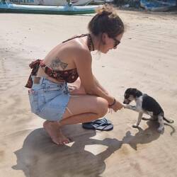Erfreut über die medizinische Versorgung, die ihr nun sicher war, ging es am nächsten Tag wieder zum Strand. Mittlerweile kam 'Malee' schon von weitem angelaufen, sobald sie meine Stimme hörte und freute sich über ihre Kekse. Hach mein Herz... Und ja, 'Malee' haben wir sie genannt. Ganz simpel, weil wir sie am Strand von TrincoMALEE gefunden haben und es unserer Meinung nach schön klingt.
