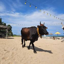 Ach und am Strand gallopierte übrigens jeden Abend eine Kuh vor ihrem Besitzer davon, der sie zurück nach Hause bringen wollte. Und abends trafen wir regelmäßig einen Freund von Wiz, der mit Hilfe einer Plastikflasche Fische angelegte....