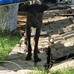 Weil wir dem ansässigen Rudel bei unseren täglichen Besuchen immer ein paar Snacks mitbrachten, machten wir es uns dann zur Aufgabe, dem 'Schattenwesen' auch etwas zukommen zu lassen. Schön anfüttern, dann in ein Handtuch wickeln und zur Hunderettung bringen. Doch allein das Füttern gestaltete sich schwieriger als gedacht. Erstens ließ das kleine Ding, Menschen nicht nah genug an sich ran und zweitens wurde es sofort vom Rudel vertrieben sobald dieses realisierte, dass wir Kekse dabei hatten. Nach ner kurzen Team-Besprechung dann unser Plan: Die beiden Jungs beschäftigen das Rudel und ich versuche mich dem Winzling zu nähern. Ein wenig Geduld mussten wir schon aufbringen aber dann hatte es geklappt und ich konnte 'sie' füttern. Nackt und mit großen Augen starrte sie mich an. Allein der Anblick tat mir im Herzen weh.