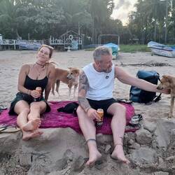Der darauf folgende Versuch die kleine einzufangen ging dann aber ordentlich schief. Was war das auch für eine Idee, einen so schüchternen Hund einzufangen und in ein Handtuch gewickelt auf einem Roller transportieren zu wollen?? Bei der Aktion hatten wir Hilfe von Wiz und einem seiner Freunde. Das Resümee? Wiz und sein Kumpel bekamen die kleine zwar zu greifen, diese fing daraufhin allerdings laut an zu schreien und biss vor Angst um sich. Dabei erwischte sie die beiden jeweils an der Hand. Das war zugegeben suboptimal, denn die Menschen hier haben keinerlei Impfschutz und vom Hund brauchen wir gar nicht erst anfangen. Außer einem verschreckten Hund, leicht verletzten Locals und Aufruhr am Strand, hatten wir nicht viel erreicht. Wir ließen also etwas enttäuscht von der Idee ab und informierten Nirojan.
