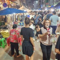 Auch hier gab es einen Nachtmarkt, der sich zu unserer Freude keine zwei Minuten zu Fuß von unserer Unterkunft befand. Das mussten wir natürlich direkt ausnutzen. Und während wir uns durch die Stände schlemmten, wäre uns fast entgangen, dass auf einmal Marlon (aus dem Hostel in Chiang Mai) vor uns stand und uns anstrahlte. Glücklich über unser Wiedersehen, suchten wir uns ein passendes Plätzchen und verbrachten den Abend mit thailändischem Essen und guten Gesprächen.