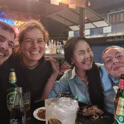 Unseren letzten Abend verbrachten wir mit der Hostelchefin, Linn. Aufgrund eines unschönen Zwischenfalls zwischen ihrem neuen Mitarbeiter Shaun und einem Hostelgast, lud sie besagten Gast, Leo, Rico und mich zum lustigen Beisammensein in der Bar ihres Bruders ein... Quasi als Wiedergutmachung. Besagter Barchef schob den vorbeifahrenden Polizisten regelmäßig Bestechungsgelder zu, damit die Bar ein kleinwenig länger geöffnet bleiben durfte, als es die eigentlichen Regeln erlaubten. Die Thailänder wieder... 😅 Shaun wurde, was uns trotz dem Vorfall etwas schockiert, noch am selben Abend fristlos gekündigt. Schade, uns war er eigentlich ganz sympathisch. So hat eben jeder andere Empfindungen. 🙃