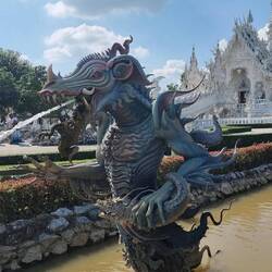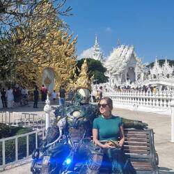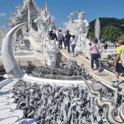 Am nächsten Tag ging es für Rico und mich dann zum Rollerverleih und von dort zunächst zum berühmten weißen Tempel. Dieser wirkte wie eine Mischung aus religiöser Anlage und Kunstausstellung. Außer den wirklich viiielen Touristen, hat uns die Tempelanlage sehr gut gefallen.