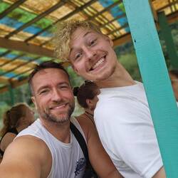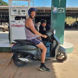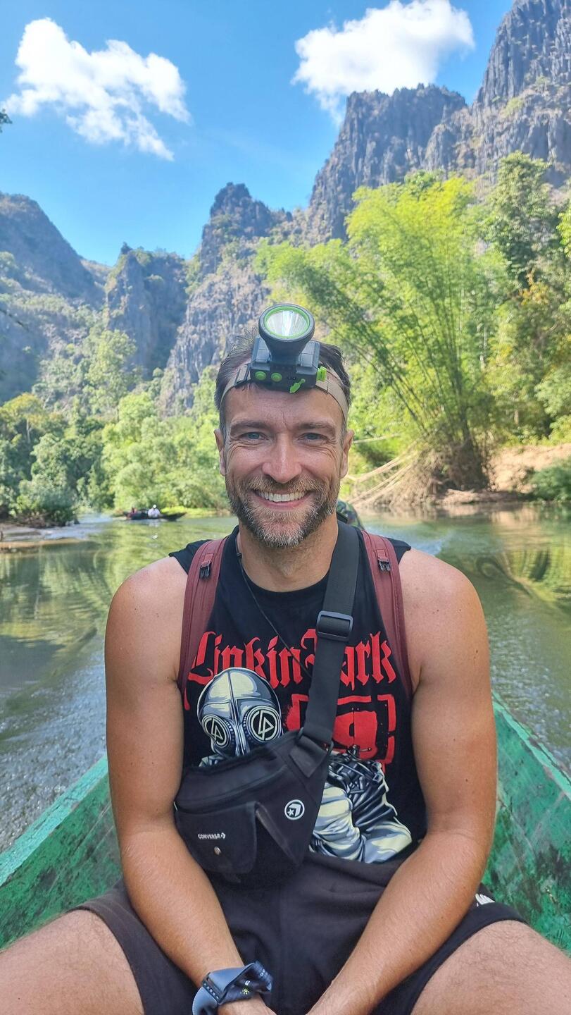 So ging es mit den Rollern los, um verschiedenste Aussichtspunkte zu besteigen (jetzt waren wir ja schließlich im Game) und die blauen Lagunen zu besichtigen. Bei einer der Lagunen gab's sogar einen Springturm, von dem sich jeder von uns ins etwas zu kalte Nass stürzte. Abends erkundeten wir den Ort und suchten nach 'dem leckersten Essen von Vang Vieng'. Dabei hatte Rico dann aber scheinbar etwas falsches erwischt und lag anschließend für einige Tage mit einem ordentlichen Magen-Darm Infekt im Bett. Armer kranker Hase. 🐰