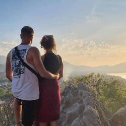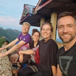 Den Sonnenaufgang am nächsten Morgen ließen wir uns natürlich nicht entgehen und kurz darauf machten wir uns an den Abstieg. Unten angekommen ging es weiter in ein kleines Dorf. Hier wurde uns anhand einer Höhle und einem kleinen Museum die Historie des Dorfes und dessen Bewohner näher gebracht, welche besonders durch den 'Secret War' geprägt ist. Anschließend wanderten wir durch unglaublich schöne Landschaften. Felsen hoch und durch Wasserfälle wieder runter, über Felder, vorbei an Lehmhütten, kleinen Dörfern und dessen Bewohnern. Rico und ich waren schwer beeindruckt von dieser wunderschönen, noch sehr ursprünglichen Landschaft.