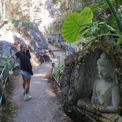 Die Umgebung, oder besser gesagt, die Natur hielt allerdings was sie verspracht. Um die Gegend zu erkunden, liehen wir uns wieder einen Roller und fuhren durch die kurvenreichen Straßen in Richtung Nord-westliche Landesgrenze zu Myanmar. Dort besichtigten wir eine Tropfsteinhöhle und erkundeten das Gelände drumherum. Auf dem Heimweg legten wir noch einen Stopp bei einem Aussichtspunkt und einem schönen Wasserfall ein.