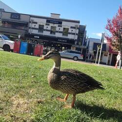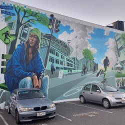 Am nächsten Tag steuerten wir dann erstmal eine orthopädische Praxis an. Viel tun konnten sie nicht, immerhin konnte ich dort aber ein schickes (Stütz-)Korsett abholen. Das war doch schonmal was. Festgesurrt erkundeten wir dann die Innenstadt von Dunedin - Rico voraus und ich im Entengang hinterher. Mir war's etwas unangenehm, Rico hat sich allerdings sehr gefreut, seinen ganz eigenen 'Pinguin' durch die Straßen führen zu können.