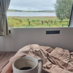 Jetzt ist's aber erstmal genug mit gebuchten Touren und luxuriösen Campingplätzen! Weiter soll die Reise gehen, back to the roots, erstmal wieder mitten in die unberührte Natur. So fanden wir auf unserem Weg einen wunderschönen Platz, direkt an einem noch viel schöneren See. Hier verbrachten wir den Abend. Am darauf folgenden Morgen stolperten wir mit einer Tasse Kaffee in der Hand aus dem Auto und direkt auf einen großen Felsen am Wasser. Die Wellen plätscherten ruhig vor sich hin und die Sonne schien uns in die Gesichter. Kann man denn irgendwie schöner und entspannter in einen Tag starten?? Wohl nicht! ☀️