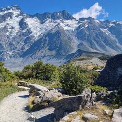 Am nächsten Morgen machten wir uns auf zum Mount Cook. Es gibt hier mehrere schöne Treks. Wir entschieden uns für den entspannten, dreistündigen Hookers Trail. Dieser wurde uns angepriesen, weil er wohl besonders schön sei und aus Film und Fernseh bekannt sein soll. 🤷♀️