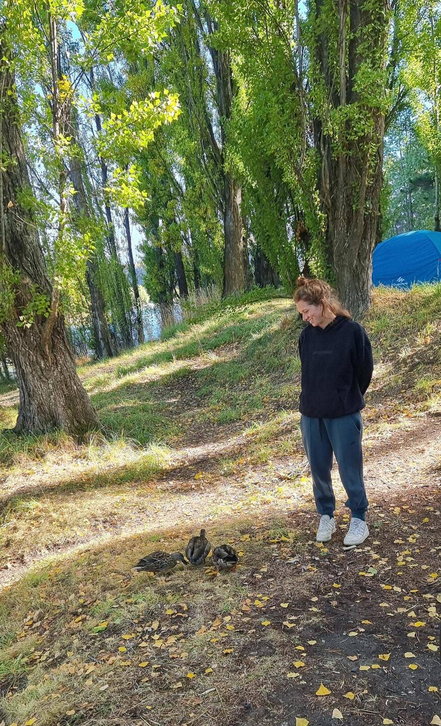 Nach einer Weile kam die kleine Familie vorbeigewatschelt und erbat ein paar Körner zum Frühstück. Na aber gerne doch! Begeistert teilten wir diesen Moment also mit der Entenfamilie und beobachteten fasziniert die familiäre Interaktion der Enten. Die Eltern hatten hier ganz klar die Hosen an und die Kids erstmal so gar nichts zu melden. Irgendwann gesellten sich dann auch weitere Vögel dazu und so saßen wir dann da, an diesem kalten aber sonnigen Morgen, im Wäldchen am Fluss und umgeben von Vögeln, die sich ihr Frühstück schmecken ließen, während wir selbiges mit unserem Kaffee taten.