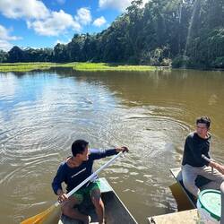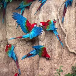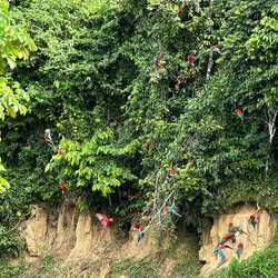 Tag drei starten wir früh mit dem Boot zur Lehmlecke für Papageien. Pflanzenfresser im Regenwald müssen regelmäßig Lehm fressen, um Mineralien aufzunehmen, die sie über Früchte nicht bekommen.Read more
