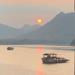Relaxed a little before we headed out for supper. We walked another direction from the hotel to find a cafe Teresa suggested with a sunset view. After walking through a few scary spots and down, what I would consider a dark back alley, we made it to our cafe. The view was stunning as the boats gathered for their own views we enjoyed our last sunset in this beautiful city. The walk was worth it! I would definitely suggest a visit to Luang Prabang if you are out this way. Food was not as good as Thailand but I felt quite at home here with the pleasant people that I had pleasure of meeting, the evening walks through the night markets and the amazing massages at $20-35 for 60 minutes. I will surely miss this feeling.Read more