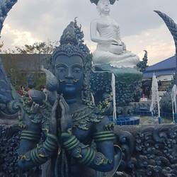 Wir haben uns heute ein Fahrrad gemietet und sind zum Wat Rong Seur Ten auch "Blue Temple" genannt.