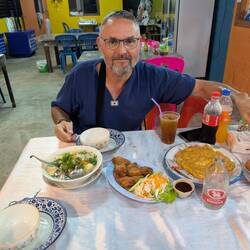 Heute sind wir Zwei Mal Richtung Turtles Farm gefahren. das war zwar nicht unser Ziel aber lag auf dem Weg. Leider waren wir ein wenig zu spät dran, um das Abladen der Fischerboote beobachten zu können .. egal haben ja noch mehrere Chancen ... die Einfachheit und die Zufriedenheit dieser Menschen hier ist einfach erwähnenswert . Es ist so der Hammer aus was die Thais alles etwas machen... Da ist Luxus ein völlig anderer Begriff. Auf der Heimfahrt haben wir beim Schneider halt gemacht. Joschi braucht mal wieder eine gute Hose und ein Hemd. Jetzt sind es halt 2 Hemden und eine Hose geworden. Bin gespannt .. dann wie immer am Nachmittag noch an den Strand und Abends zum Essen und die Bunny Bar .. richtig tolles Ambiente . .. wir haben zwar das erste Mal sehr lange auf unsere Essen warten müssen, aber es hat sich total gelohnt .. als Abschluss dann noch ein Cheesecake .. danke Conny .. bevor wir dann ins Bett sind. Gute Nacht ..Read more