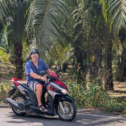 Der Tag begann wie jeder Andere. Positiv gemeint. Wunderbar. Vorhang auf, fantastisches Wetter und Urlaubsfeeling. 😎 Heute war die Lust für den Strand bei uns mal nicht da. Wollten einwenig die Umgebung erkunden bzw. Unsere Aufträge, die wir von zu Hause bekommen haben erledigen. 😁Was wir haben, das haben wir .. also auf nach Takua Pa. auf dem wunderschönen Weg natürlich kurzer Stopp bei Pemika inklusive unserem ersten Thai-Tea. sie hat sich wie immer sehr gefreut. Also weiter nach Takuapa, durch die Altstadt, an der eisernen Brücke vorbei und in das beste Einkaufszentrum ( nicht wie bei uns) und ein Soft Ice geholt . Die Männer sind in der Zeit zum Friseur gefahren und haben sich einwenig Luft und den Kopf verschafft 😉😉. Dann noch auf der Suche nach dem neuen Sternkreiszeichen für das Jahr 2026 und schon war es wieder später Nachmittag und wir fuhren wieder zurück ins Resort.. bzw. Essen. Allerdings waren wir diesmal ein wenig enttäuscht.. sind vielleicht auch schon verwöhnt . Hat alles nicht so gut geschmeckt wie bisher. Aber egal . Probieren geht über Studieren . Am Abend wollten wir dann noch Manfred und Enrico gebührend empfangen und fuhren zum Hotel 🏨 von den Beiden . .. und wir warteten und warteten und dachten dabei, eigentlich müssten sie doch schon lange dasein . Aber nichts .. immer wieder kam jemand ins Foyer, nur die Zwei nicht .. sehr komisch .. nach ca 1 Stunden hat Conny dann nochmal geschrieben und gefragt wo sie denn bleiben 😎😎😎und jetzt kommt's. Sie waren schon lange im Hotel . Nur nicht in dem wo wir gewartet haben . Hahahahaha. So ist das Leben. Was allerdings absolut nicht schlimm war, da das La Flora eine sehr schöne Anlage ist und wir dort noch ein paar schöne Bilder machen konnten... 😃. Nach der Klarstellung haben wir uns dann noch schnell getroffen und haben die zwei Jungs beim Essen begleitet. Jetzt war es dann Zeit nach Hause zu fahren. Also auf auf unsere Roller und ab die Post nach Hause. Gute Nacht .