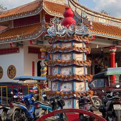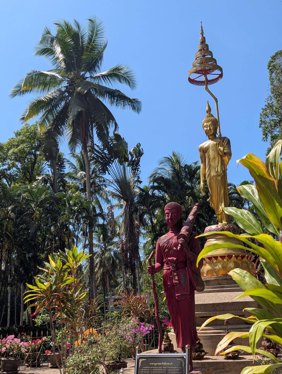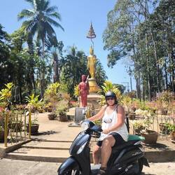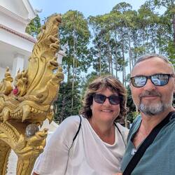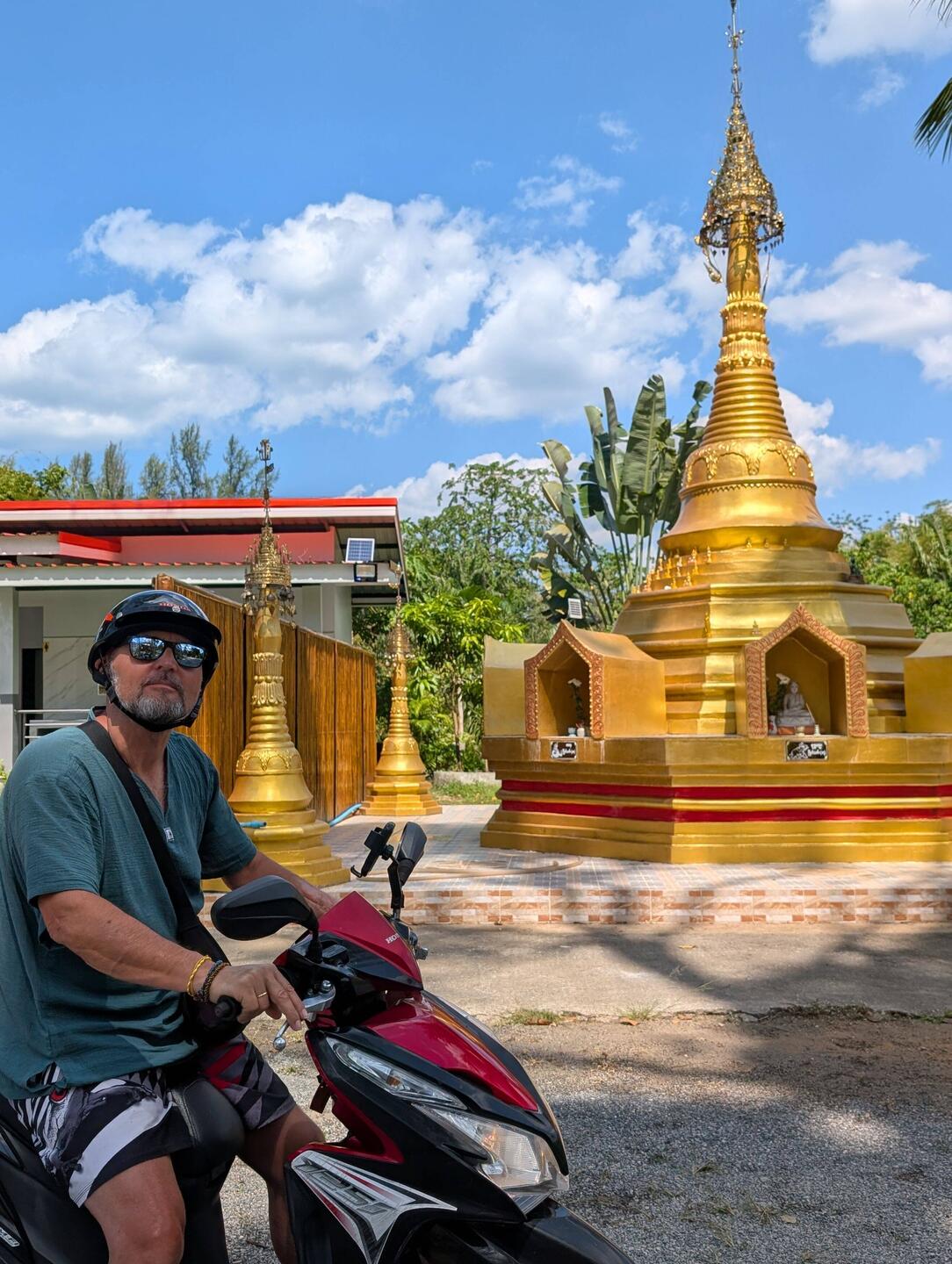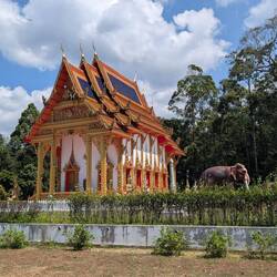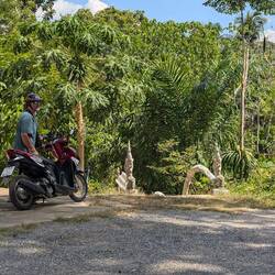 Nach einen wieder mal langen Frühstück und netten Unterhaltung wollten wir mal zum Strand ... Natürlich kam alles wieder anders wie geplant .. kurz bevor wir losfahren wollten, kam der Schneider noch zur Anprobe vorbei. alles perfekt gepasst und Joschi und der Schneider glücklich.. so jetzt konnten wir los .. also auf die Roller und ab die Post .. auf dem Weg zum Beach ist mir dann wieder so viel eingefallen, was wir noch alles nicht gesehen haben.. erster Stopp im Khuk Khak Tempel und schauen was es alles Neues gibt...und tatsächlich auch hier bauen sie einen zusätzlichen Tempel ..... Dann wieder auf die Roller und am Beach vorbei , weiter bis zum Pier, wo es nach Kho Kho Khao geht (Da wollen wir übrigens dann morgen hin) Da wir schon mal hier waren, gingen wir auch noch mal ins Tsunami Memorial. Es ist immer wieder erschütternd zu sehen, was hier vor 22 Jahren passiert ist .. einfach schlimm.. danach ging es wieder auf Elefantensuche .. und tatsächlich haben wir ihn versteckt in Urwald entdeckt ...