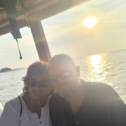 Nach einem langen aber sehr ruhigen Flug sind wir pünktlich 06.30 Ortszeit in HongKong gelandet. Der Flug verging im wahrsten Sinne des Wortes im Fluge .. der Flughafen hier ist riesig und unser Gate .. wie kann es auch anders sein ganz hinten in der Halle .. also 2 x mit dem Zug fahren, laufen, laufen und nochmals laufen, nochmal durch den Zoll alles auspacken und dann endlich am Gate. Dort erwartete uns der perfekte Start in den Tag .. seht selbst ..... Melde mich später nochmal .. bis denne.. in Phuket sind wir dann auch planmäßig so Viertel nach elf gelandet. . Die Koffer waren bereits auf dem Band und das Ganze lief gut ab... Bis auf . .. wie immer hatten wir ja bereits schlauer Weise ein Taxi zum Transport geordert. Nur die Dame war diesmal nicht da .. also die mit dem Schild " Sommer Khaolak" . widererwartend blieben wir aber sehr ruhig .. Michael der bereits in Khaolak war, hat dann nochmal schnell dort angerufen und den Fahrer ausfindig gemacht... Nur wie sollten wir eigentlich den Fahrer finden.. kennen ihn ja nicht.. aber da die Thais alle so nett sind, hatten wir dann doch noch großes Glück.. nach ungefähr 10 Minuten kam ein kleiner Bursche, der dann sagte wir sollen einsteigen er ist von diesem Unternehmen... Naja, da die Leute hier alle (die wir bisher kennengelernt haben ) sehr nett wären, stiegen wir dann auch ein. also rein und ab ging die Post .. würden wir woanders nicht machen .. aber hier ist das kein Problem... Witziger Weise hat dann irgendjemand anderes ein Bild von Joschi beim Verladen der Koffer ein Bild gemacht und an den Chef des 🚕 geschickt... Ist hier so Sitte... .. so und den Rest dann morgen gleich, bin jetzt totmüde,... Joschi schläft schon 😘.... Und hier nun noch der Rest ,.... Unsere Ankunft in yama war sehr herzlich... Wir wurden schon erwartet. Man beachte , unsere Freunde sind extra nicht zum Strand gefahren, um uns persönlich zu begrüßen. Danke Micha und Conny 😘.. nach kurzen Checken der Lage haben wir dann unseren Bungalow bezogen. Die Männer sind dann gleich noch die Telefonkarten holen und ich mal in den Pool. 😃Es fühlt sich so gut an, wieder hier in Thailand zu sein. Am späten Nachmittag sind wir zusammen mit unseren Rollern zum Abendessen gefahren, danach nach Hause, da uns die Augen so langsam schwer wurden .. aber das wisst ihr ja schon ... Jetzt starten wir in den letzten Tag des Jahres und wünschen Allen (uns eingeschlossen) einen guten Start ins neue Jahr. Und vergessen das Alte... Na nicht ganz .. die Geburt unserer kleinen Enkeltochter Frida natürlich nicht🥰🥰. Bis denne ..Read more