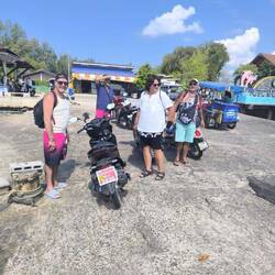 Heute haben wir unser Ziel erreicht 😎😎😎 Dafür haben wir uns an der Tankstelle um 10.oo Uhr morgens getroffen und ab ging die Fahrt Richtung Pier. Hier war ganz schön was los...Hintergrund hierfür war das die Autofähre zur gleichen Zeit beladen wurde, wie die kleinen Boote. Es ist erstaunlich was hier alles so transportiert wird und vor allen Dingen wie 😁😁da würde in Deutschland nur funktionieren.,. Allerdings muss ich schon zugeben, dass ich trotzdem ich immer ein mulmiges Gefühl bei der Überfahrt habe. . aber die Überfahrt ist nicht sehr lang und wir selber könnten das Ufer schwimmend erreichen .. nur die Roller wären halt weg und unsere Klamotten usw. Ein wenig nass .. Gott sei Dank ist noch nie was passiert und auch diesmal ging alles gut👍👍👍 auf der anderen Seite angekommen ging es dann (man glaubt es kaum) direkt zum Sunset Beach der direkt am anderen Ende der Insel ist . Unterwegs kam uns dann noch so eine *angriffslustige* Scooter Gruppe entgegen und ich dachte immer hoffentlich haben die nicht die gleiche Idee wie wir. Die waren mir schon auf den Mopeds unsympathisch... Die Hälfte hatte eine Thaifrau zur Begleitung dabei .. ich bin ja eigentlich niemand wo sich irgendwelche Urteile macht oder so, nur in diesem Fall kam da Klischee richtig zur Geltung. .. bei jeder Kurve dachte ich .. biegt doch einfach ab. . aber den Gefallen haben sie uns nicht getan .. am Strand angekommen haben dann unsere Jungs gleich mal einen Platz für uns gesucht und auch gefunden.. sie waren Gott sei Dank einen Tick schneller als die anderen😎😎 so richtig schön typisch deutsch ... Dann ging es auch schon los mit den Beschimpfungen ... So was kann ich gar nicht verstehen und kenne es auch nicht so hier .. noch kurzen Wortgefecht war aber Gott sei Dank alles wieder im grünen Bereich und wir hatten einen wunderschönen Tag an diesem eigentlich paradiesischen Ort. . Wir sind dann mit der letzten Fähre (inkl. Sonnenuntergang) zurück aufs Festland und gemeinsam zum Abendessen gefahren. Das Essen war sehr gut ... Aber mich haben dann irgendwie ein paar fliegende Insekten erwischt... (Oder vielleicht doch Sandmücken) .. Wie immer keiner hat was .. werde es erfahren ... nur ich .. nein Blut muss besonders gut sein 😃😃😃 Gehe morgen schnell in die Apotheke und Frage was es sein könnte... 😎. Dann ab zum Duschen und der Tag war schön wieder beendet .. morgen gehen die Jungs fischen .. bin gespanntRead more