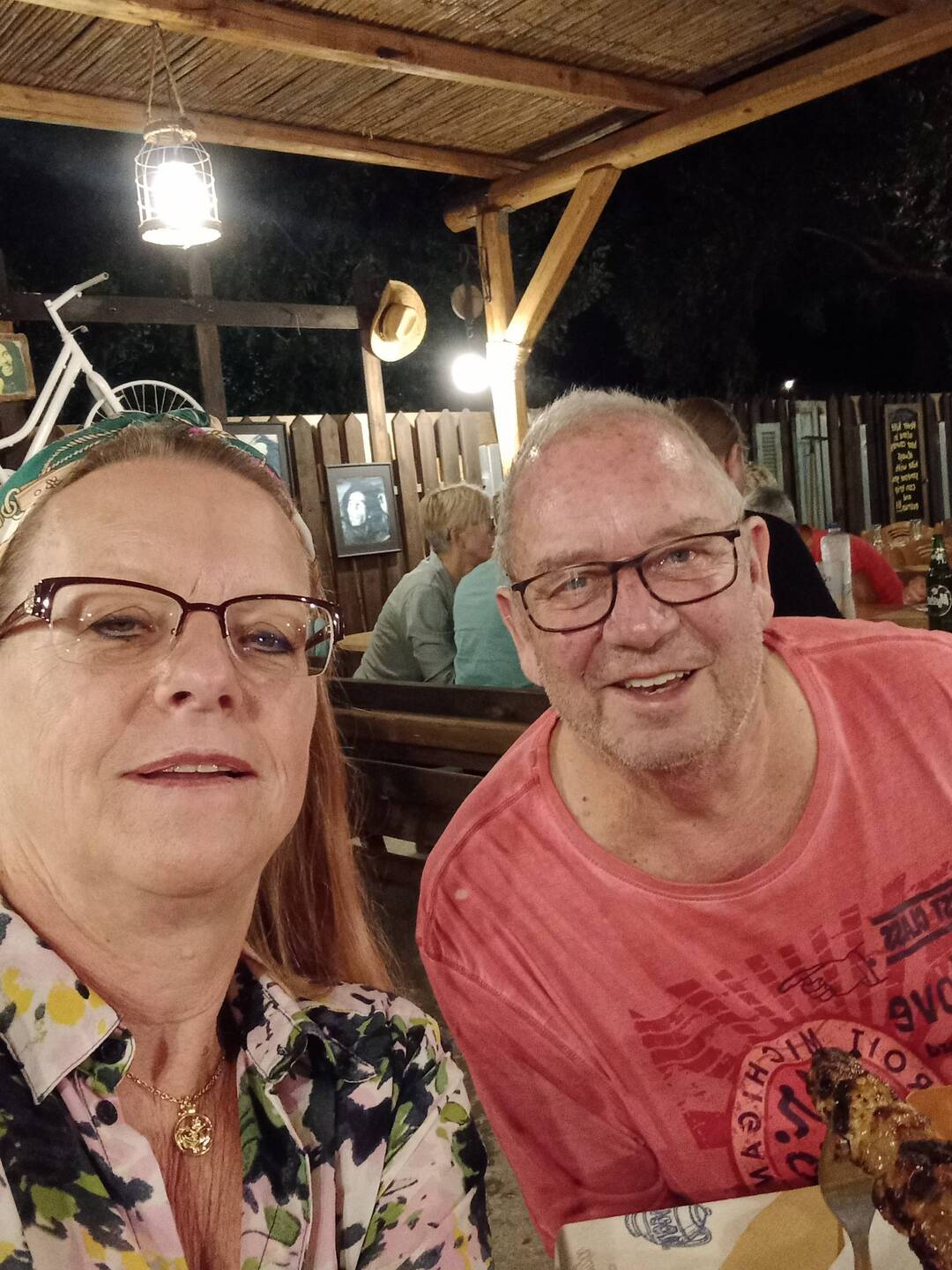 Gestern haben uns Jaques und Joelle aus Paris, zur Zeit bei Kostas im Urlaub, besucht. Zusammen hatten wir ein super Abendessen, genannt Babis world. Alle typischen Gerichte der kretischen Küche aufLes mer