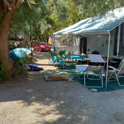 Ziemlich fertig kamen wir auf unserem Platz an. Lieb begrüßt und wie immer: Sucht euch einen Platz aus. Danach kam die Mietwagenfirma und lieferte einen kleinen feuerroten Citroen. Das ersteLes mer