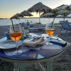 Heute waren wir mal den Strand entlang spazieren und haben in der Strandbar von Stravoulas Neffen erst ein Bier genossen und abends eine Fischplatte im Sonnenuntergang direkt am Strand. Magie!
