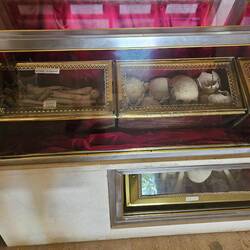 Selbst die Gruften einiger hoher Ordensleute sind zu besichtigen. Die Steinsarkophage hinter Glas und die Gebeine daraus in kleinen Truhen, ebenfalls verglast.
