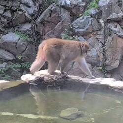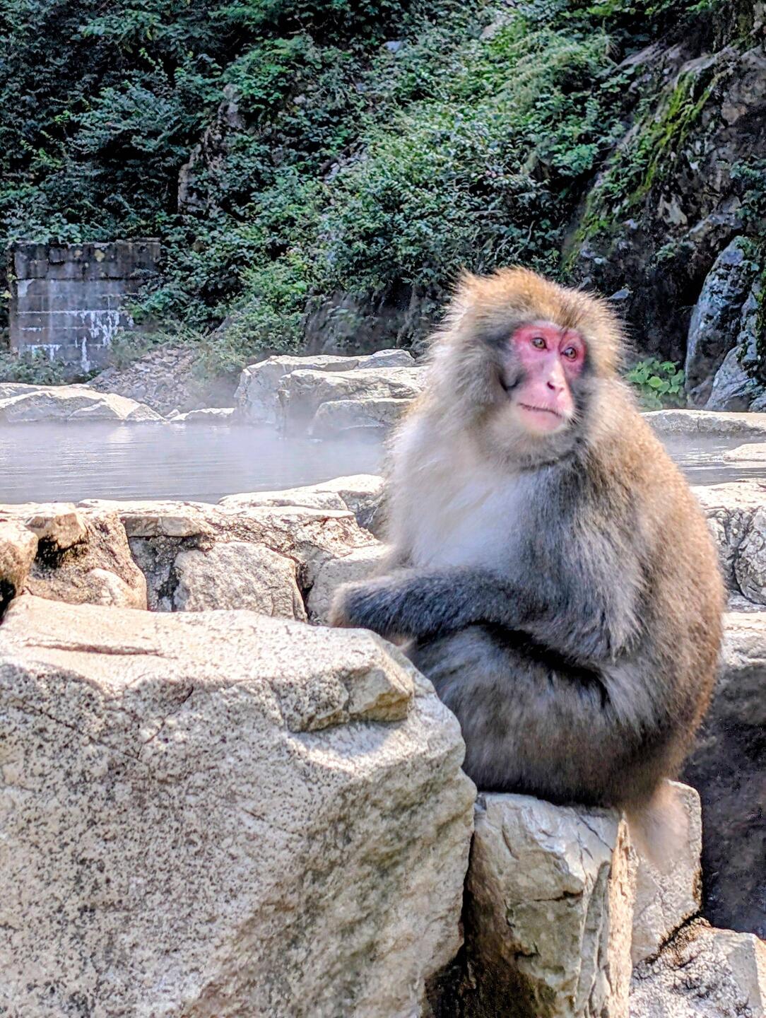 Das Besondere an dieser Gegend ist, dass hier im Winter die Snow Monkeys (Makaken) in den heissen Quellen baden, um die Kälte aushalten zu können. Jetzt im Herbst sind.nicht so viele da. Sie leben hier in den Bergen.