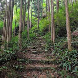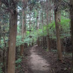 Der Nakasendo ("Weg durch die Berge" ) ist ein alter Postweg von Kyoto nach Tokio, wobei das Meiste überbaut wurde. Er verband 69 Poststädte miteinander. Dieser Teil hier ist noch relativ "naturbelassen". Ich weiss noch nicht genau, wie weit ich den laufe- das hängt vom Asphaltanteil ab 🤷