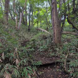 Es hatte aufgehört zu regnen und ich beschloss, doch noch ein Stück auf dem Trail zu laufen und etwas weiter hinten nach Kawaguchiko abzusteigen. Nur kam der Abstieg nicht. Es fing jetzt richtig an zu regnen und ich musste doch den Berg hoch, den ich eigentlich vermeiden wollte. Mir war richtig kalt (7°C) und ich fluchte. Dann holte ich endlich meine Fliessjacke aus dem Rucksack und es ging deutlich besser (ich Idiot, hätte ich viel früher machen sollen 🙄).