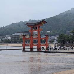 Ich hatte ganz vergessen, dass heute Samstag ist. Trotz Regens sind die Fähren voll und unendlich viele Menschen unterwegs. Die Insel ist bekannt durch ihr Tori (Tor), das im Wasser steht. Ausserdem gibt es unzählige Tempel und Schreine (und auch einige Caches 😉).