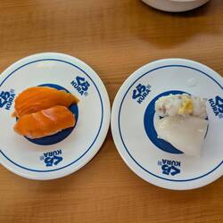 Zum Glück gab es ein englisches Menü. Ich wählte Nigiri mit mittelfettem Thunfisch + ordern. Kurz darauf kam auf dem oberen Band ein Teller angeschossen und hielt vor mir 😳 Das war dann wohl offensichtlich für mich 😇 System verstanden! (Jetzt schoss gerade ein Glas Bier vorbei für den Herrn neben mir 😂)
