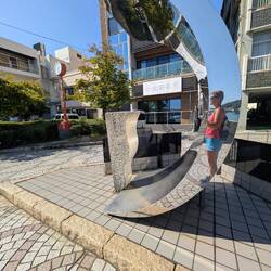 Durch die Stadt verlaufen mehrere Flüsse bzw. teilt sich der Fluss in viele Läufe auf. Es gibt jedenfalls viel Wasser und viele Brücken. Das macht die Stadt trotz der Hitze (heute waren wieder 29°C) ganz erträglich. Den Friedenspark durchstreifte ich nochmal von einer anderen Seite und entdeckte weitere interessante Perspektiven. Z. B. hatte ich das Peace Gate ganz übersehen und die ewige Flamme.