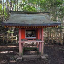 Ich bin meine Runde um den See trotzdem gelaufen mit einigen Überraschungen. Zuerst führte mich ein Cache zu einem sehr schönen Schrein, der leider noch nicht auf hatte. Da will ich morgen noch mal hin...