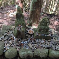 Zusammenfassend wäre zu sagen, dass der Kumano Kodo ein beeindruckender und durchaus anspruchsvoller Weg ist Ein bisschen mehr Infrastruktur für Leute mit Zelt hätte ich mir gewünscht (sowas wie das Teehaus heute 😇) und ein paar mehr Bären könnten sie auch organisieren und nicht immer nur die Schilder aufhängen 😉 Und er steht für ein friedliches Nebeneinander verschiedener Religionen, dem Shintoismus und dem Buddhismus. Also volle Empfehlung!