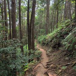 Der "Trail" startete erstmal auf einer asphaltierten Bergstrasse (ohne Autos), ging dann aber in einen sehr (!) steilen Waldpfad über 😂, zum Teil mit Stufen. Nach einiger Zeit erreichte ich die Wolkengrenze und lief dann sozusagen im Nebel...