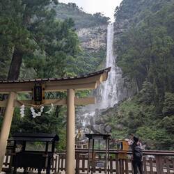 Ganz in der Nähe gab es noch eine sehr schöne 4-stöckige Pagode zu bestaunen und den 133m hohen , 13m breiten gewaltigen Nachi Wasserfall. Wahrscheinlich auch wegen des Regens führte er ordentlich Wasser und machte ganz gut Krach 😃