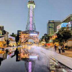 Ein paar Caches weiter beschloss ich, die hiesige Spezialität zum Mittag zu essen: Okonomiyaki. Das ist ein mehretagiges Essen. Zuerst wird auf der heissen Platte ein kleiner Fladen gebacken (wie Crepe). Darauf kommt dann Chinakohl, Mais, Sprossen, Speck. Das wird rumgedreht und von unten gebraten. Das Ganze wird dann auf Nudeln gesetzt. Das wiederum kommt dann auf ein verrührtes Ei. Dann wird es mit dem Spatel in 2x3 Teile zerteilt und in meinem Fall mit gebratenen Shrimps in der Mitte verfeinert. Und man kann es sogar erstaunlich gut mit Stäbchen essen (den Speck hab ich allerdings aussortiert 😇). Das war sehr lecker und sättigend 😋