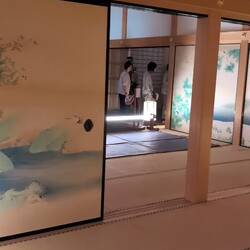 Der nächste Cache zeigte mir ein Kunstmuseum eines Mannes, der alte Techniken zum Bemalen von Stoffen wiederbelebt hat und tolle Kimonos gestaltet. Auch das Gebäude und der Garten drumherum waren sehenswert (mit einer Höhle, Wasserläufen unf - fällen und alten Bäumen)
