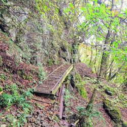 Dann machte ich mich an den Aufstieg des nächsten Berges, diesmal bis auf 1.320m. Der Weg war allerdings mehr als abenteuerlich. Die Hänge sind extrem steil und an vielen Stellen sah man, dass hier öfter mal Steinlawinen abgehen oder der ganze Hang abrutscht. Einige der Brücken, die an den Hang gebaut waren, litten auch schon arg an Altersschwäche und sahen nicht mehr sehr vertrauenserweckend aus 😳