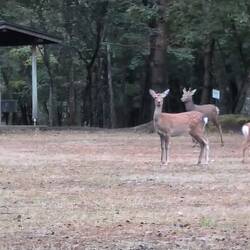 Und dann noch eine Überraschung : als ich um das Gebäude herumgehe, schauen mich 5 Rehe erschrocken an. Sie sind sich nicht sicher, ob ich gefährlich bin 😄 Und dann kommt auch noch das Familienoberhaupt gelassen angeschlendert... Am Ende sind sie aber doch in den Wald entfleucht 😊