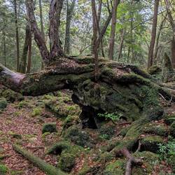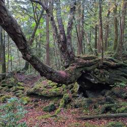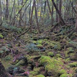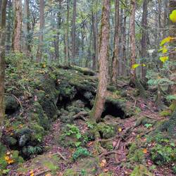 Der Weg durch den Wald dorthin war toll- so hatte ich mir Japan vorgestellt. Überall lagen große und kleine Lavabrocken, mittlerweile mit Moos überwachsen, es gab Hohlräume und Stellen, wo der Boden eingesackt ist. Die Bäume umwachsen die Steine mit ihren Wurzeln. Tolle Atmosphäre 😍