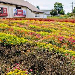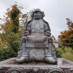 Und dann kam ich durch eine wunderschöne Gartenalage mit vielen farbenfrohen Büschen und Blumen. Bei gutem Wetter kann man von hier aus den Fuji sehen und wunderschöne Bilder machen. Leider glänzte er heute mit Abwesenheit, er war einfach nicht da 😳 Wo er sein sollte, sah man nur Wolken. Nichts...