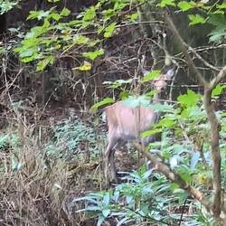 Zweimal begegneten mir Rehe. Beim ersten Mal hörte ich nur einen Pfiff (Vogel?) und blickte dort hin: da standen mehrere Rehe wie angewurzelt (ich natürlich auch). Und dann sah/hörte ich, daß die Rehe dieses Geräusch machen.