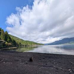 Gegen 13h war ich zurück am See. Ich ass in dem Restaurant an der Seilbahn zu Mittag und zum Nachtisch gab es ein Eis und einen Cappu. Dann lungerte ich noch etwas in der Sonne rum, suchte einen letzten Cache und schlenderte in mein Guesthouse zum Rucksack packen. Den Onsen nutzte ich selbstverständlich auch nochmal ausgiebig - ganz für mich alleine 😇