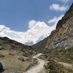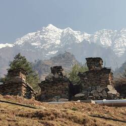 Auf dem Weg sahen wir das erste Mal den Manaslu, leider versteckt er den Gipfel noch hinter Wolken.
